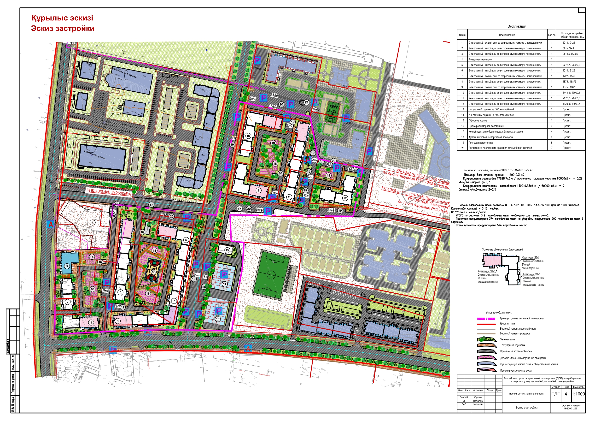 Ауданы 0.8 га учаскеде, Құсайынов, Ломоносов, Кенесары Қасымов көшелерінің шекараларында егжей-тегжейлі жоспарлау жобасы