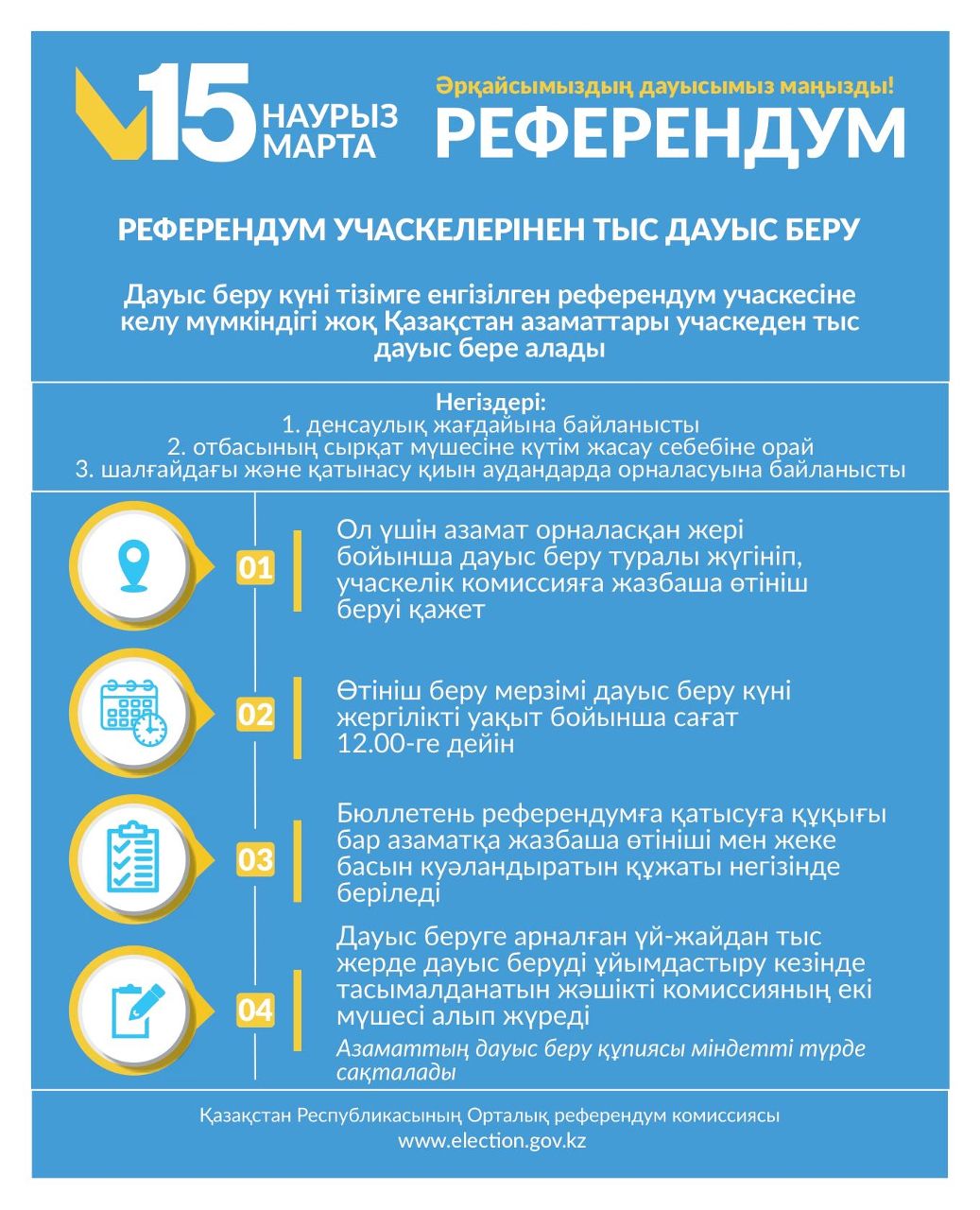 Құрметті Ақсу қаласының тұрғындары! 2026 жылғы 15 наурызда Қазақстан Республикасында республикалық референдум өтеді.