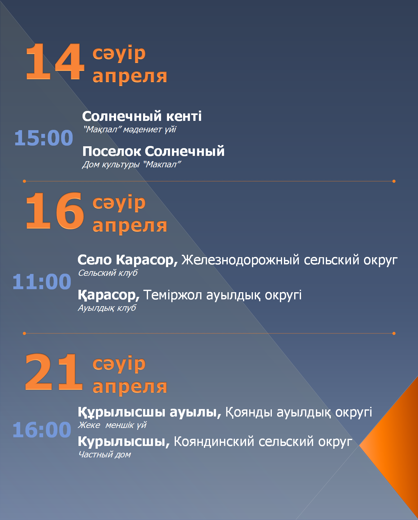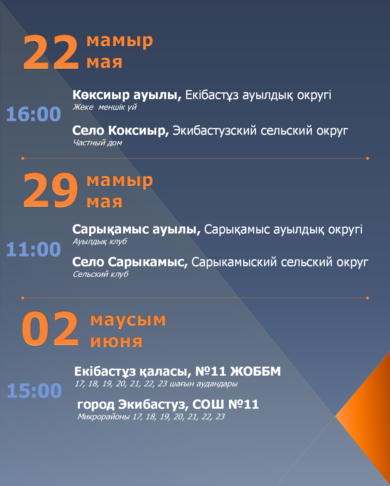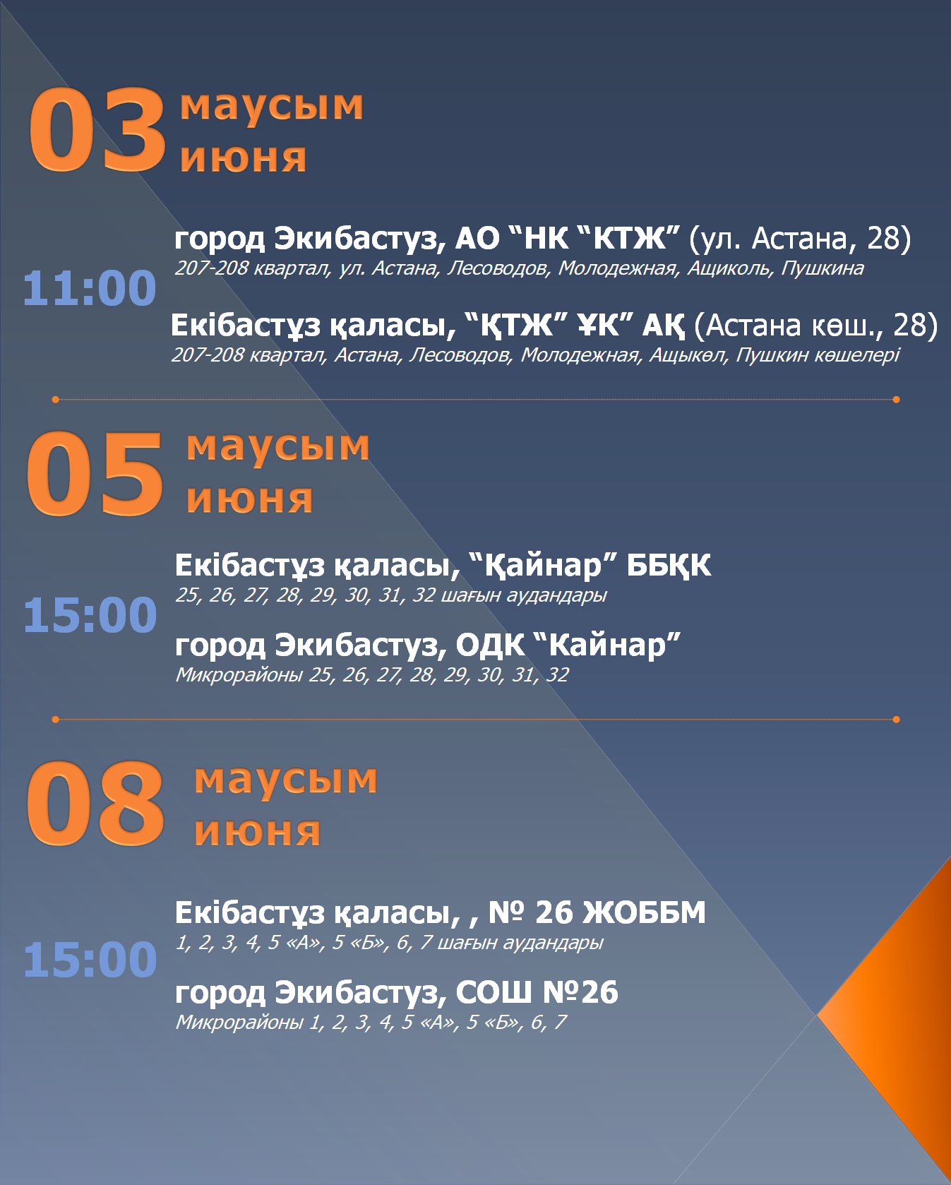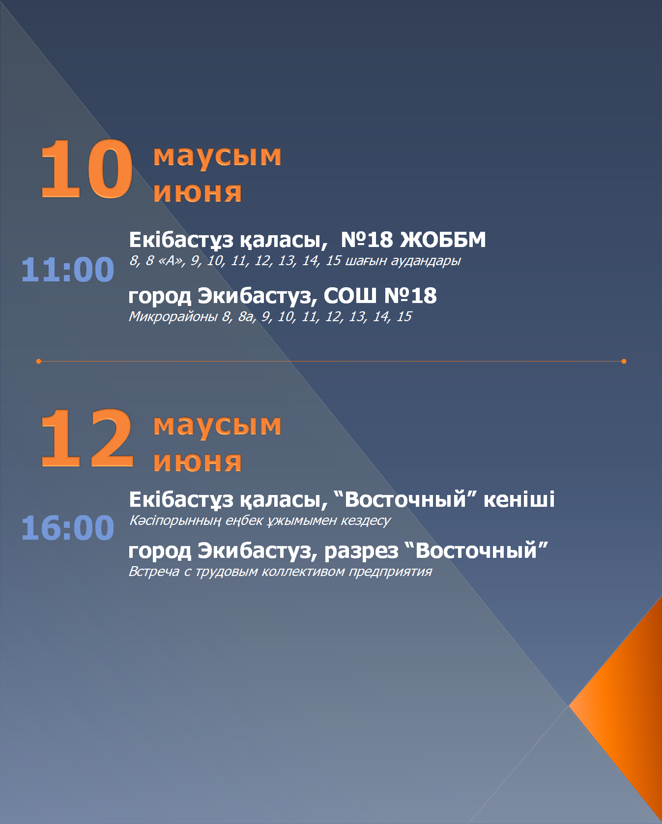 Екібастұз қаласының әкімі А.У. Бейсекиннің халықпен тұрақты кездесулер КЕСТЕСІ
