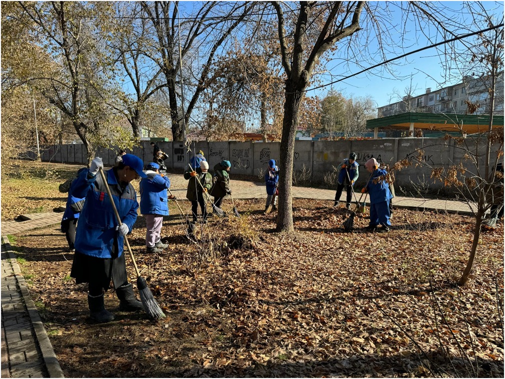Так, в микрорайонах «Самал-3» и «Нұршуақ» на улицах царила особая атмосфера. Семьи с детьми, активисты и ветераны вышли на уборку. Председатель совета ветеранов района Улыкпан Башенов отметил - каждое участие в таких акциях – это вклад в будущее: