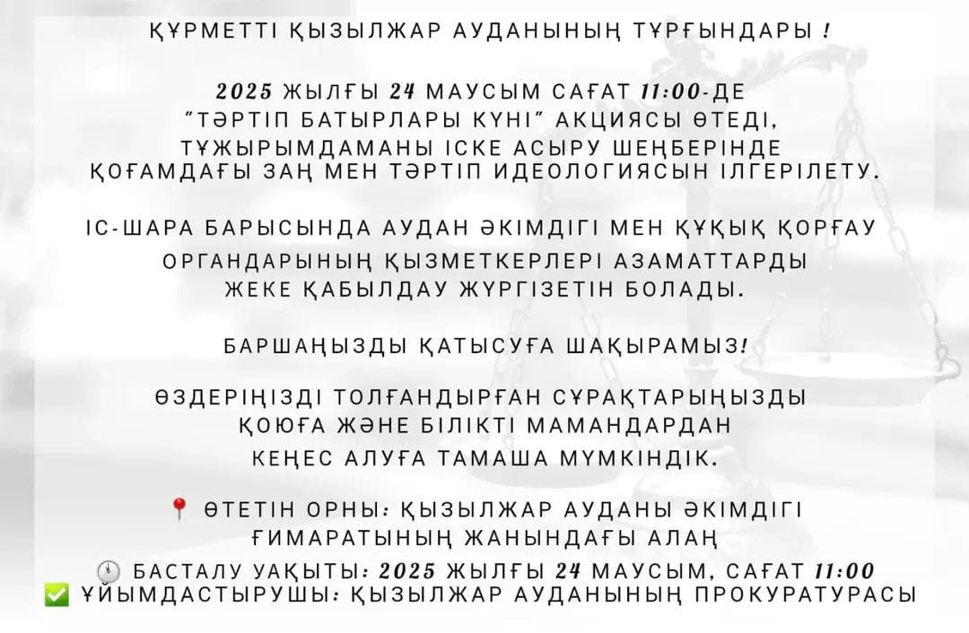 Құрметті Қызылжар ауданының тұрғындары!