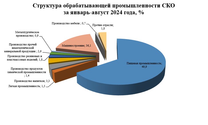 В обрабатывающей промышленности, занимающей наибольшую долю в структуре промышленного производства (83%), за январь-август 2024 года произведено продукции на 359 763,6 млн. тенге ИФО – 104,3%.