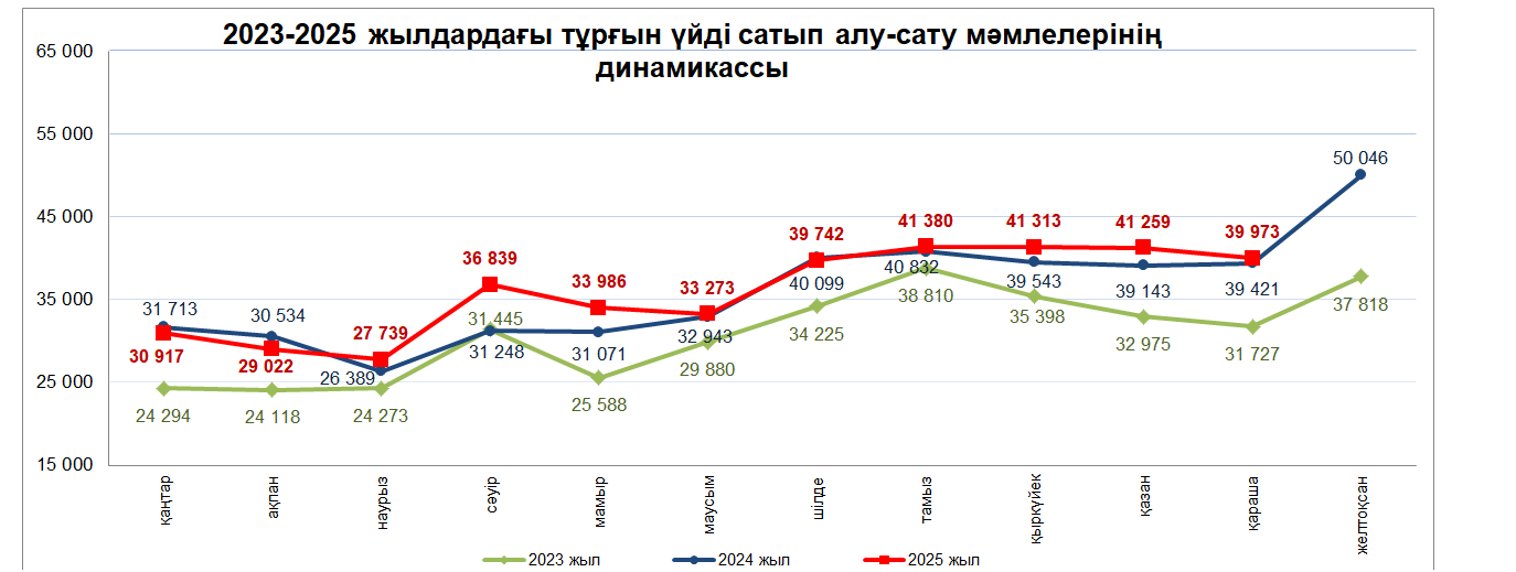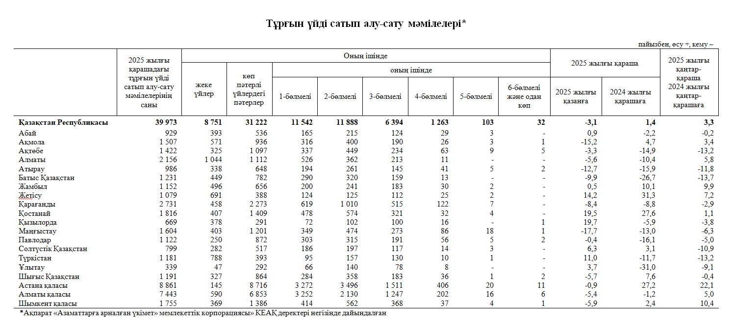 2025 жылғы қарашада тұрғын үйді сатып алу-сату мәмілелері былтырғы жылғы тиісті аймен салыстырғанда 1,4% өскен, ол кезде 39 421 мәміле ресімделген болатын. Мәмілелер санының ең жоғарғы өсімі Жетісу облысында (31,3%) байқалды, ең үлкен төмендеу – Ұлытау облысында (-31%). 2025 жылдың қаңтар-қараша айларындағы мәмілелер санын 2024 жылғы қаңтар-қараша айларындағы мәмілелер санымен салыстырғанда 3,3% өсім байқалды..png)