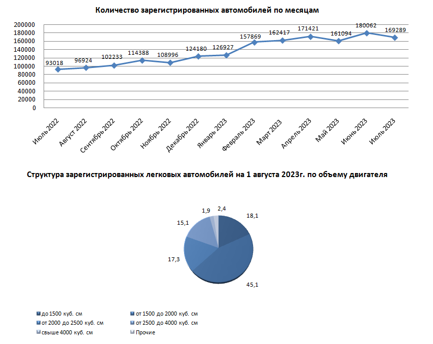 Так, по состоянию на 1 августа 2023г. количество зарегистрированных автотранспортных средств в Казахстане составило 5 015,2 тыс. единиц, из них 87,9% – легковые автомобили, 10% – грузовые и 2,1% – автобусы. За год количество автомобилей выросло на 15%.