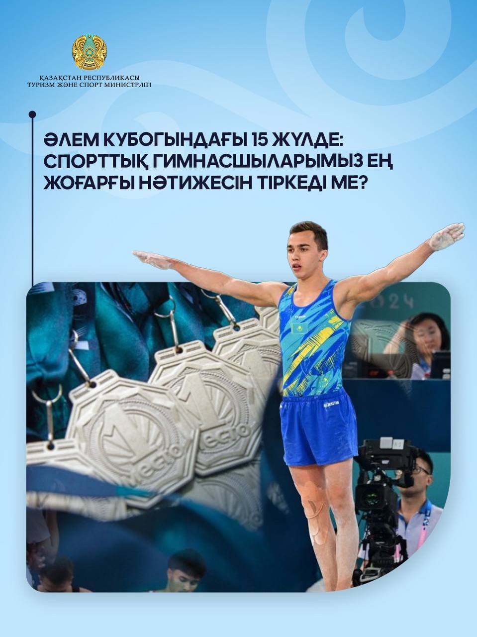 Спорттық гимнастикадан 6 кезеңнен тұратын Әлем кубогы мәресіне жетіп, жерлестеріміз үздік көрсеткіштерін тіркеді. Тек қана Милад Каримидің өзі 6 алтын, 1 күміс, 1 қола иеленіп, мансабындағы ең үздік маусымын өткізе білді. Париж Олимпиадасының күміс жүлдегері Нариман Құрбанов Әлем кубогының ортасынан басып қатысса да, 1 алтын, 2 қола нәтижесімен жанкүйерлерін қуанта білді. Дмитрий Патанин, Зейнолла Ыдырысов, Алтынхан Темірбек те жүлде алып, резервтің мықты екендігін дәлелдей білді.