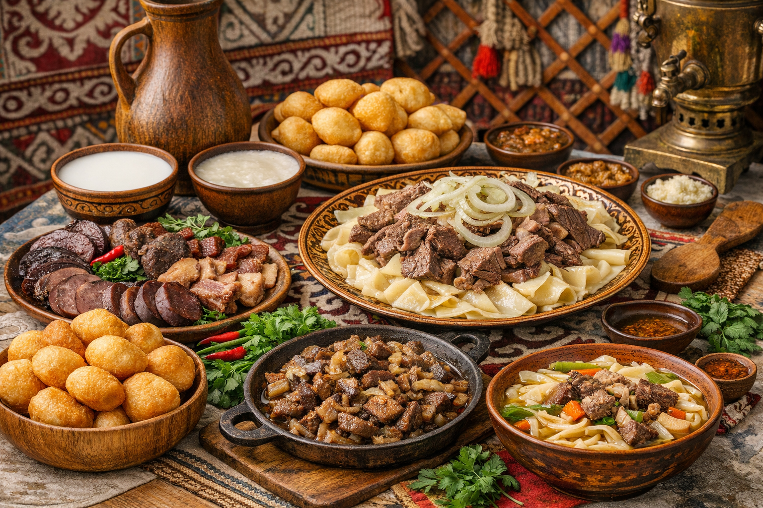 Национальная кухня Казахстана в основном основана на продуктах животноводства. Казахстанцы используют мясо лошадей, овец, коров, а также молочные продукты. Традиционные блюда отражают кочевой образ жизни: они питательные, быстро готовятся и дают силу и энергию.
