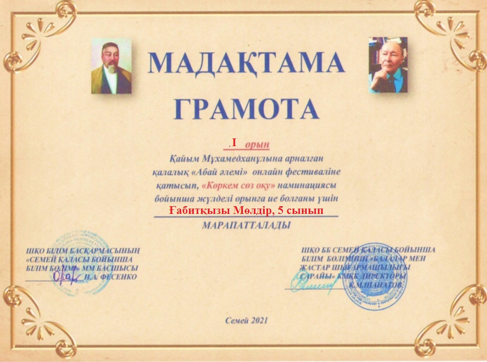 Многие наши читатели заняли призовые места в городском конкурсе чтения наизусть стихов Абая, чтение отрывков из «Слов Назидания», подготовка творческих видеороликов, конкурсов эссе.