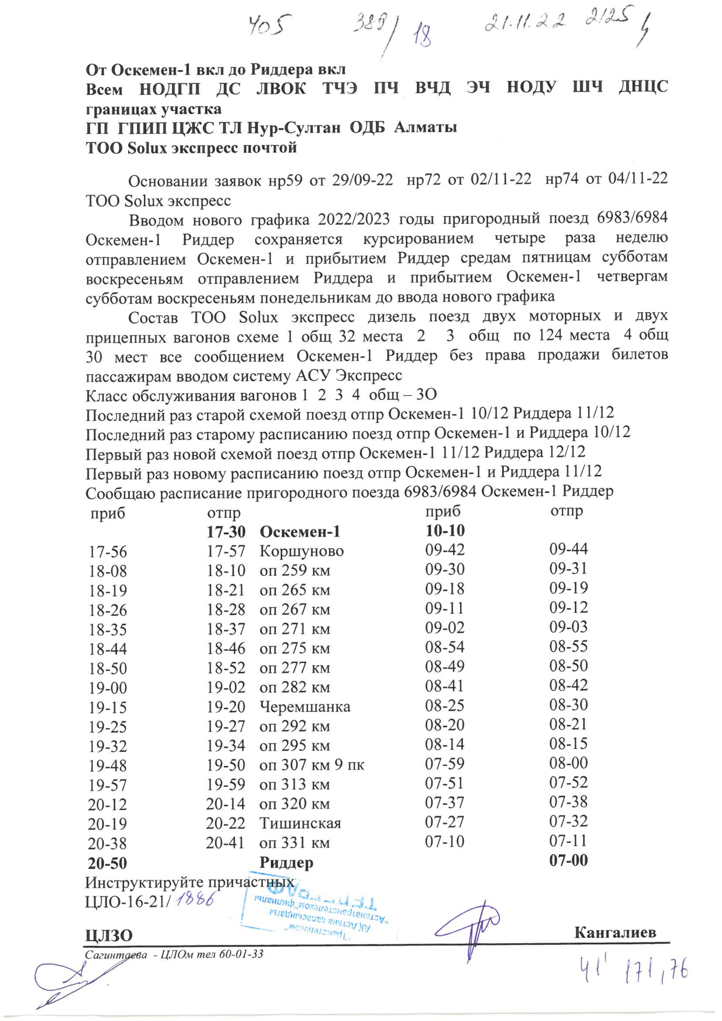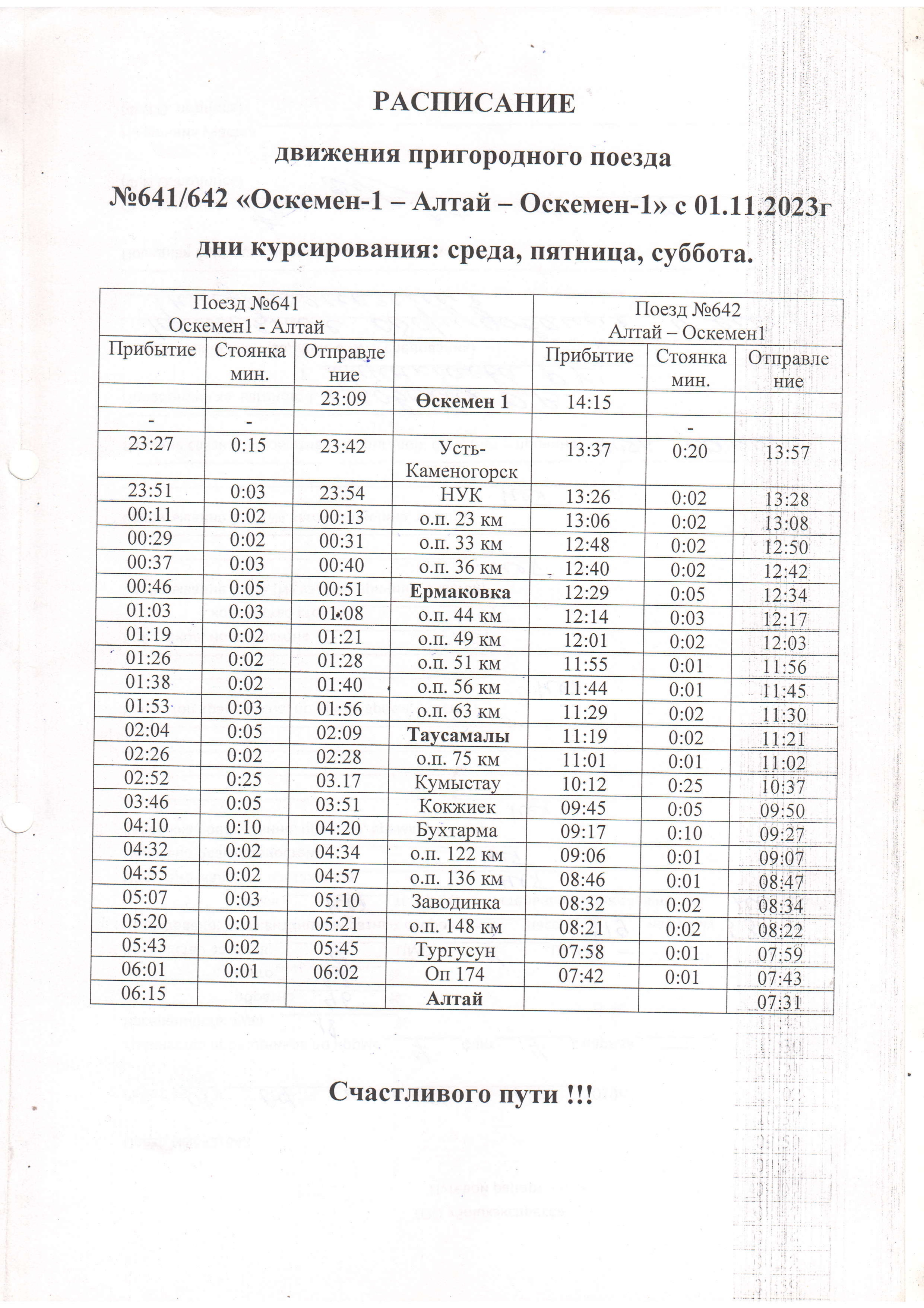 Пассажирам, направляющихся из г. Усть-Каменогорск в гг. Алтай, Риддер и обратно рекомендуется воспользоваться услугами пригородных поездов «Оскемен-1 - Алтай», «Оскемен-1 - Риддер».