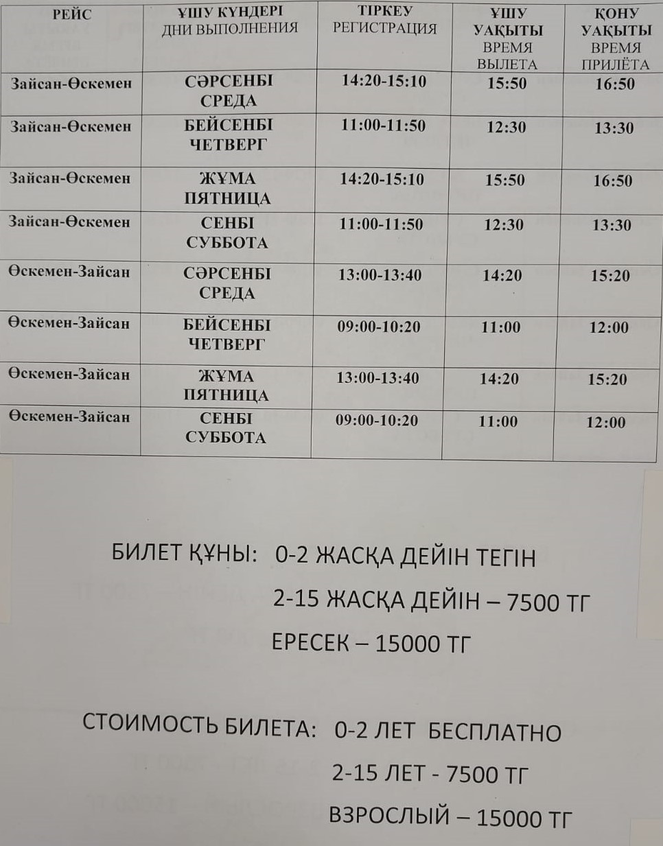 Пассажирам, направляющихся из г. Усть-Каменогорск в г. Зайсан и обратно рекомендуется воспользоваться услугами авиасообщения «Усть-Каменогорск - Зайсан».